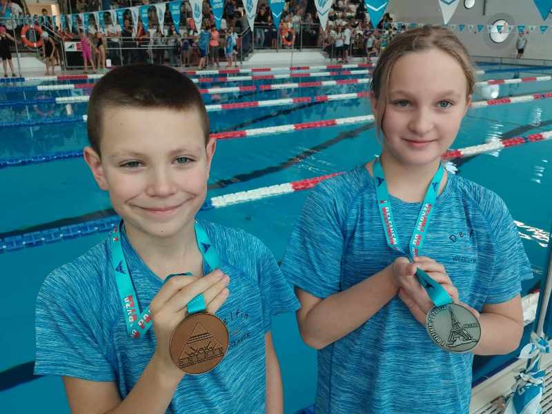 do Paryża. Startowało tam ok 500 młodych sportowców w 3 blokach. Nasz klub reprezentowała 9 pływaków. Wszyscy zawodnicy popłynęli bardzo dobrze, a większość poprawiła rekordy życiowe. Na podium stawali: